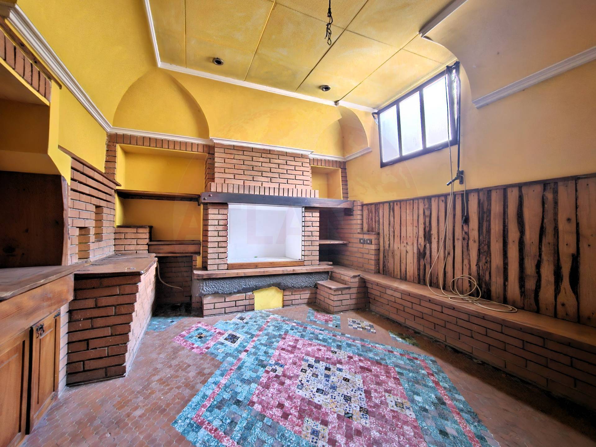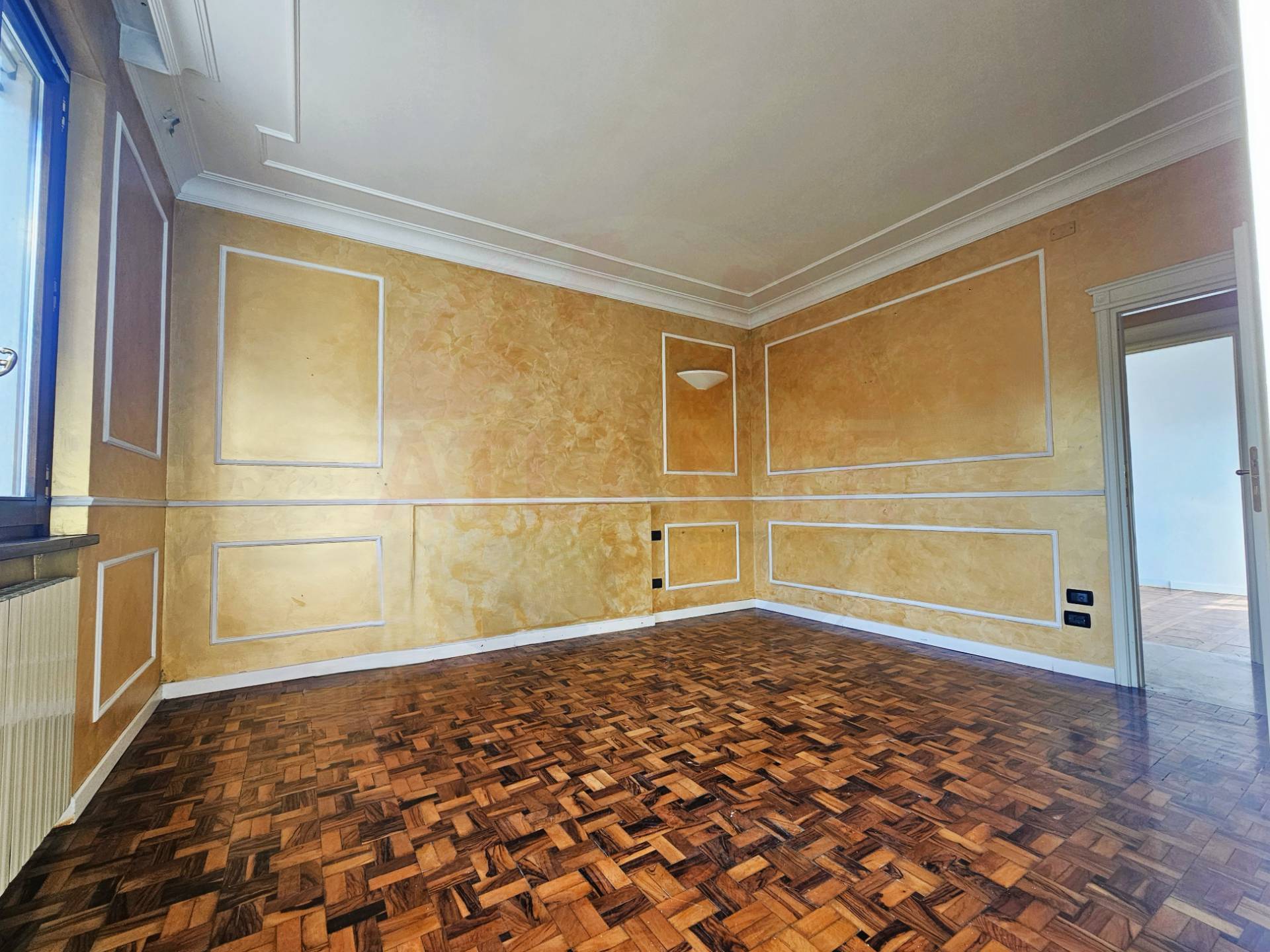 Si accede mediante disimpegno d’ingresso che si apre sulla zona giorno accuratamente rifinita con soffitti in gesso decorati e dotata di camino funzionante.