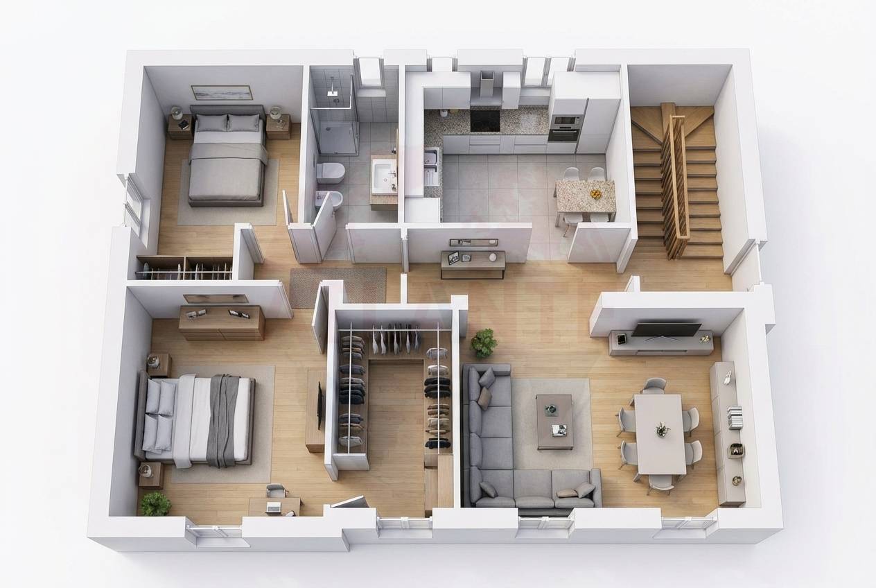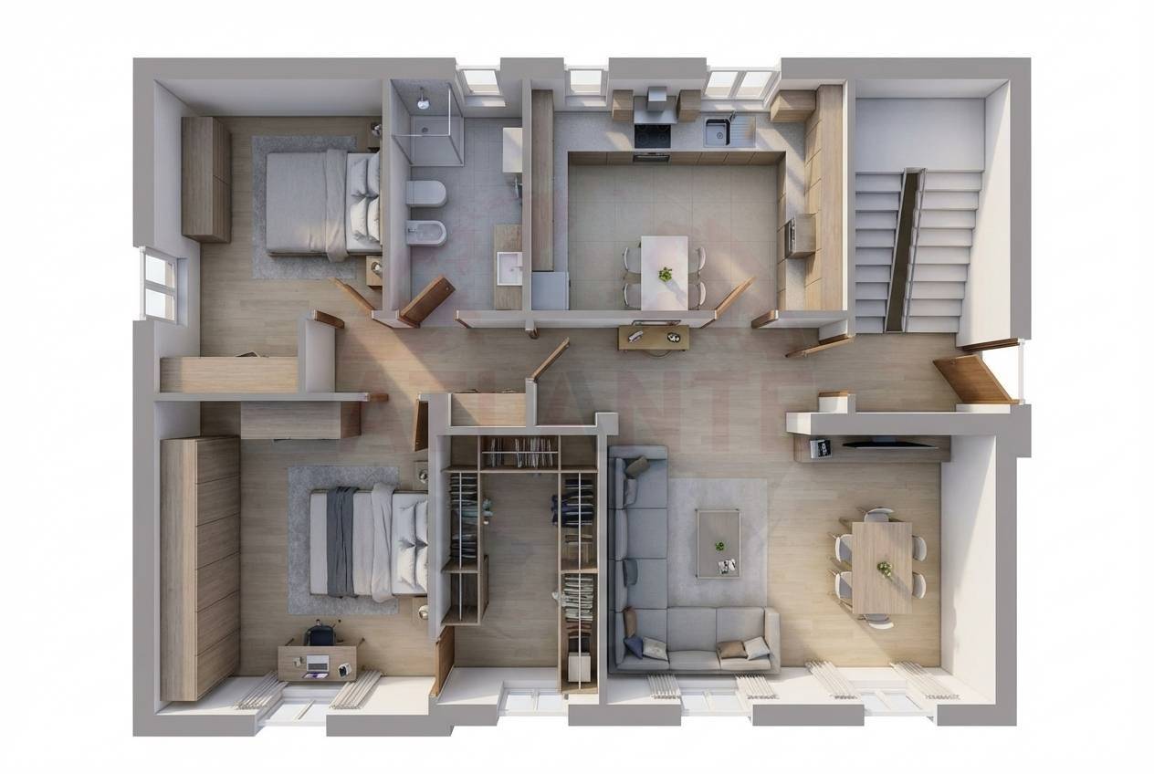 N.B. Le immagini delle stanze arredate, sono a puro scopo illustrativo e sono destinate a proporre ipotesi d’arredo e utilizzo degli spazi.