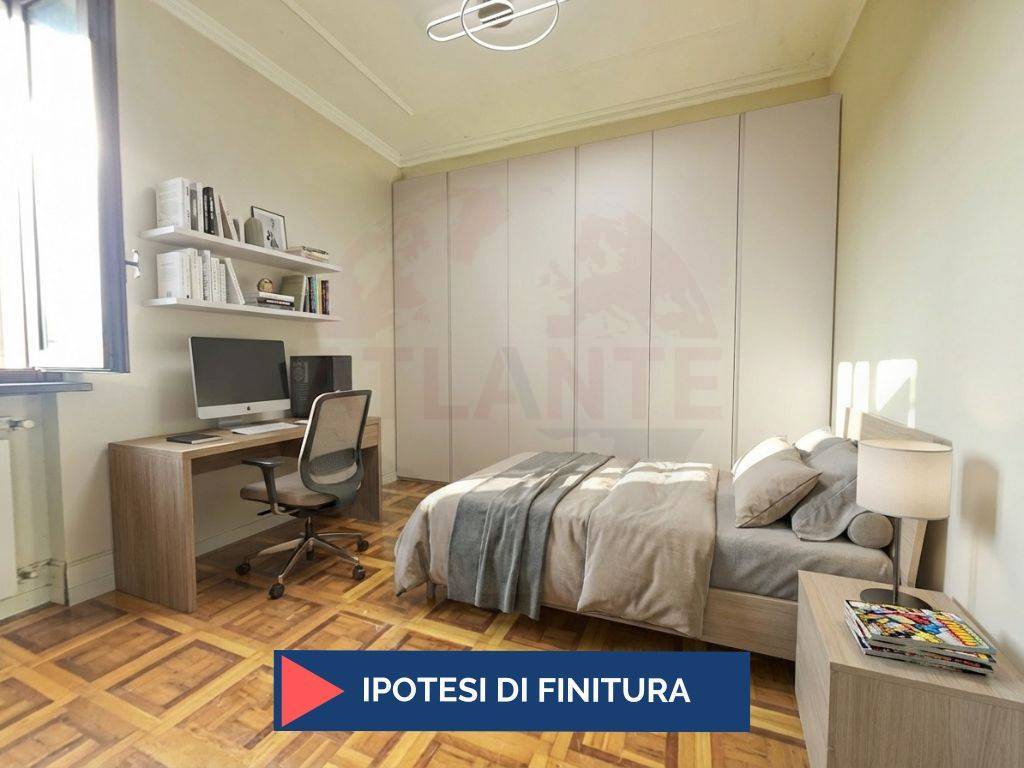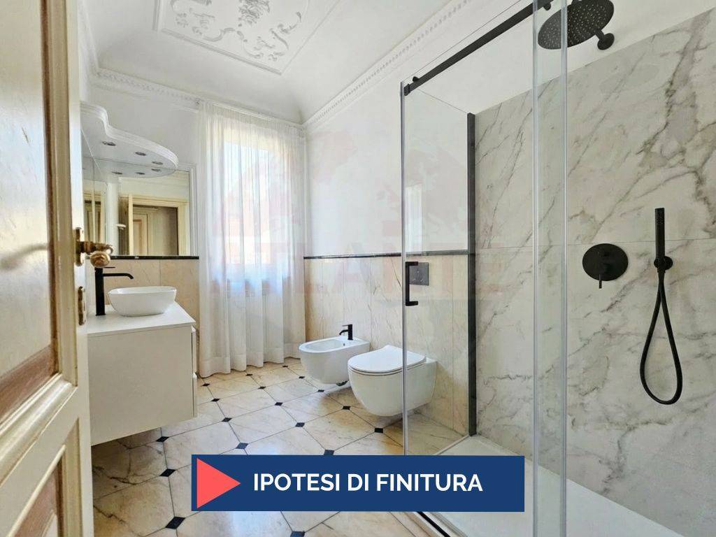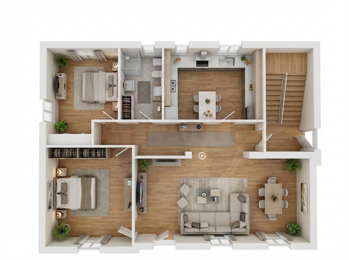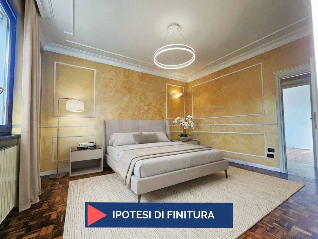 Completano questo appartamento al piano primo, una grande camera padronale completa di cabina armadio, una camera doppia e uno spazioso bagno con vasca.