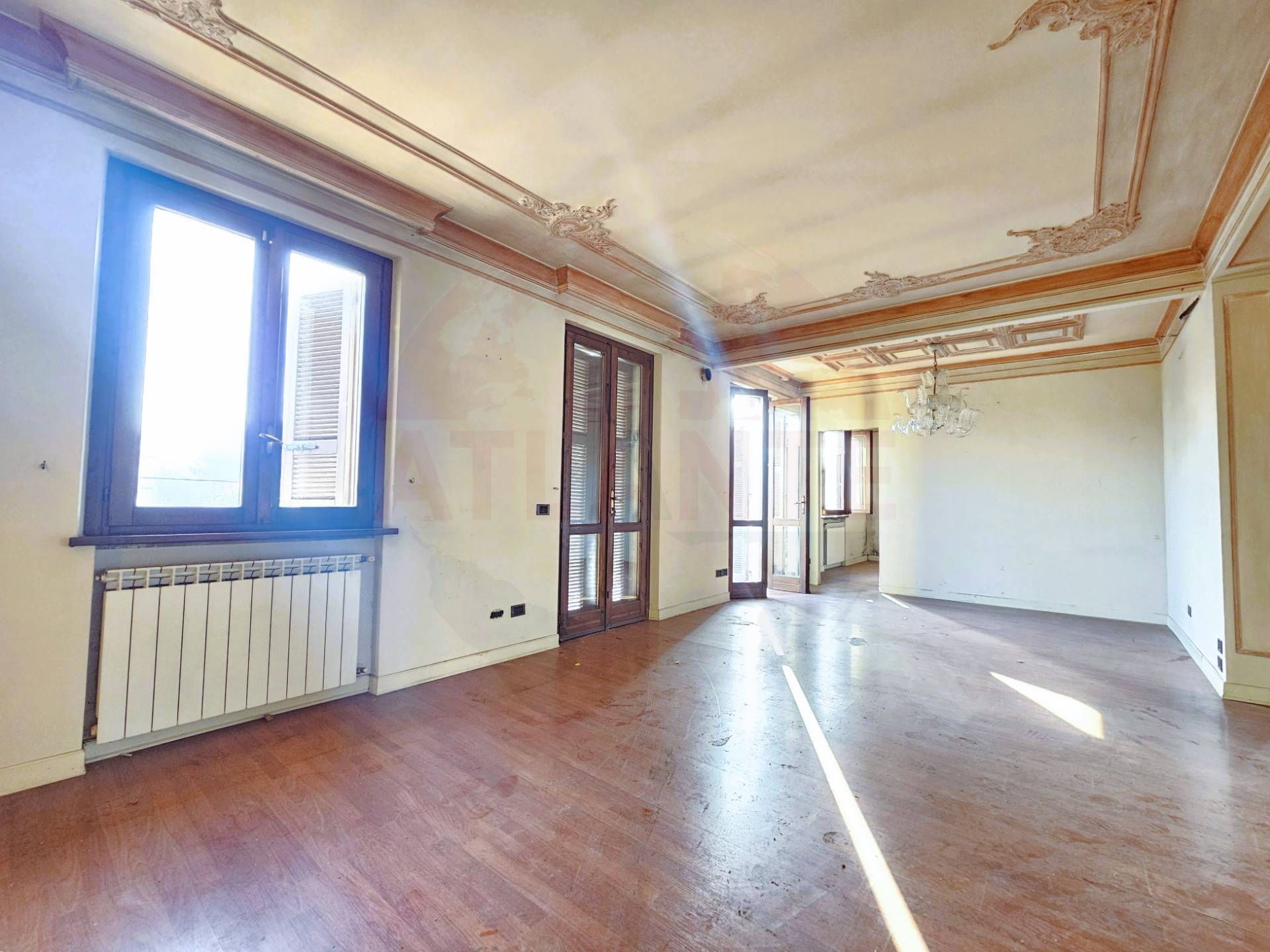 Si accede mediante disimpegno d’ingresso che si apre sulla zona giorno accuratamente rifinita con soffitti in gesso decorati e dotata di camino funzionante.